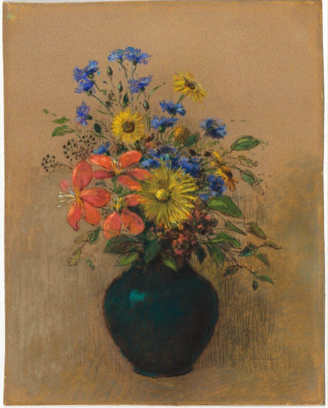Symbolist painter Odilon Redon transformed flower artwork into visions of the imagination. His Wildflowers seem to bloom in a realm between dream and memory, painted with floating colors and mystical light. Redon shifted the focus from realism to spiritual sensation—the flowers appear as if glowing from within, symbols of hope and transcendence in an era of industrial change. Redon redefined famous floral art, showing that imagination can make flowers eternal.