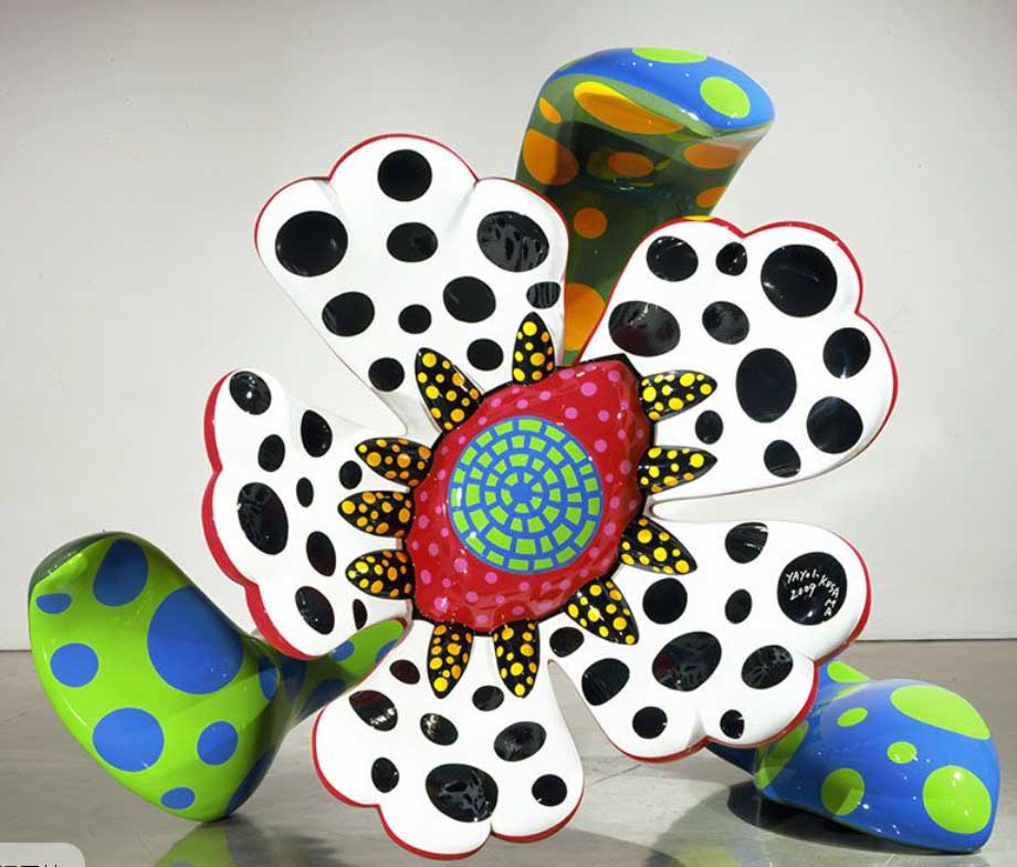 Contemporary Japanese artist Yayoi Kusama brought flowers into the language of pop and infinity. Her sculptural and painted works—including Flowers That Bloom at Midnight—explode with repetition, polka dots and neon colors. Kusama transforms the traditional vase drawing into immersive installations exhibited at the Yayoi Kusama Museum and major galleries worldwide. Her motifs reflect both beauty and psychological complexity—flowers that never wilt, caught in infinite repetition. Kusama’s work recasts famous flower artwork for the digital age, merging obsession with beauty.