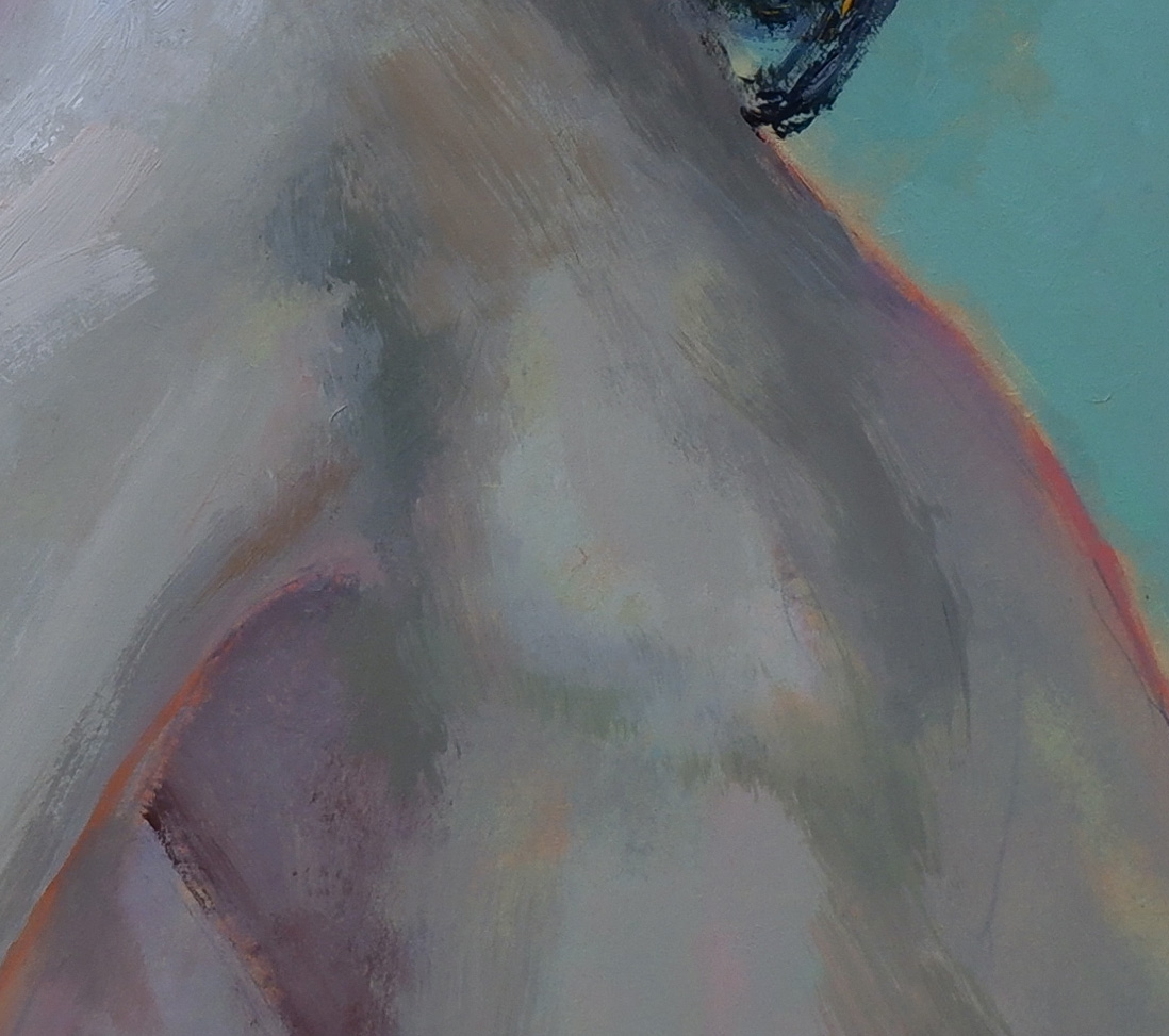 The pure mint - green background, the rich and delicate colors of the figure’s skin and hair, and the gray - purple of the cigarette and the red of the lips are high - contrast embellishments, activating the visual tension of the picture and creating an ambiguous and cold atmosphere. The painting style tends to be expressive. The free and shaping brushstrokes, in the stacking of brushstrokes on the figure’s face and skin, retain the painterliness while capturing the complex emotions of the figure, breaking away from the constraints of realism. The emotional expression is implicit and profound.