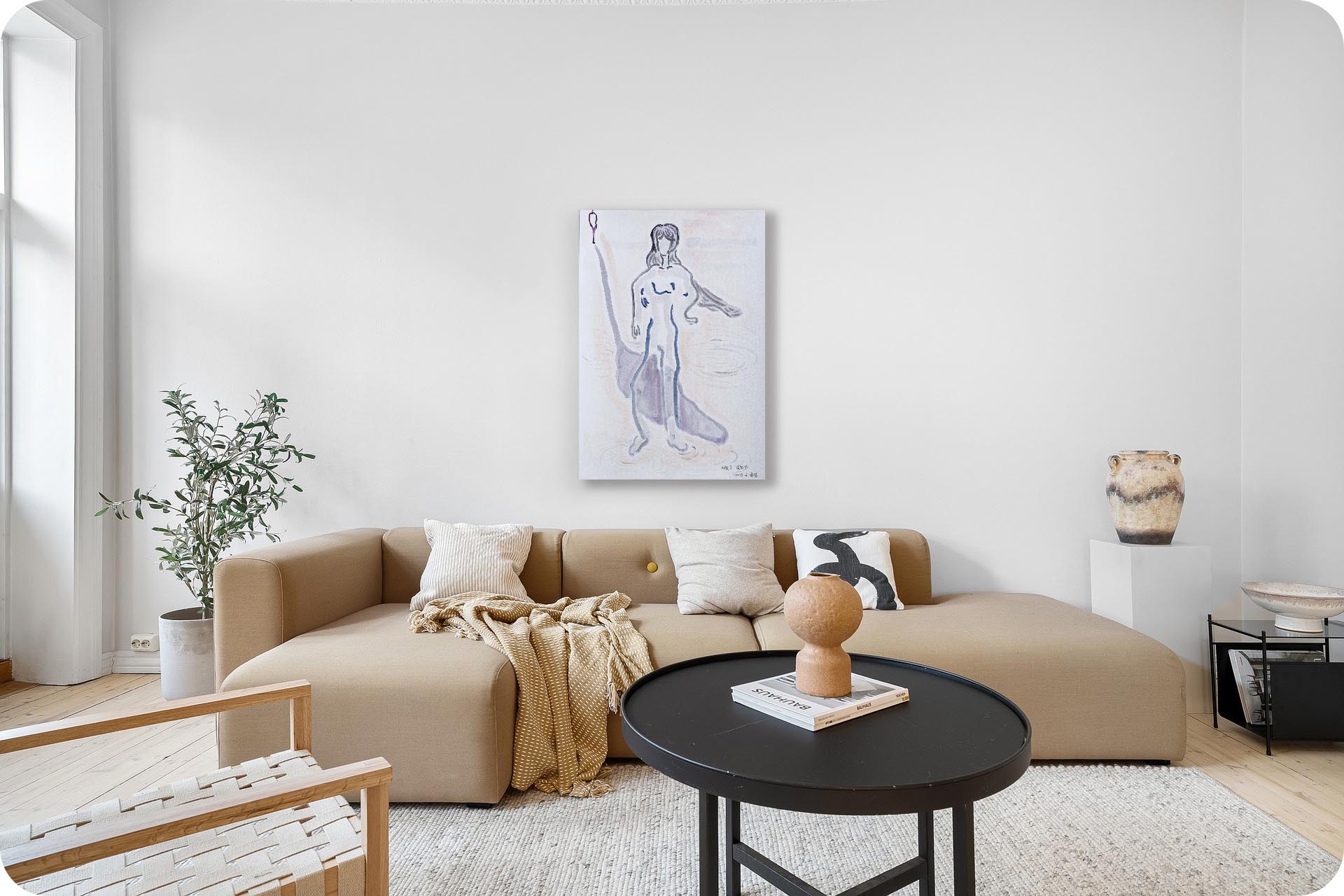 The piece lends itself to modern art galleries, exhibitions on minimalist painting, or personal meditation spaces. Its ethereal mood and openness to interpretation also make it well-suited for inclusion in feminist art research or philosophical explorations of the body as a visual case study.