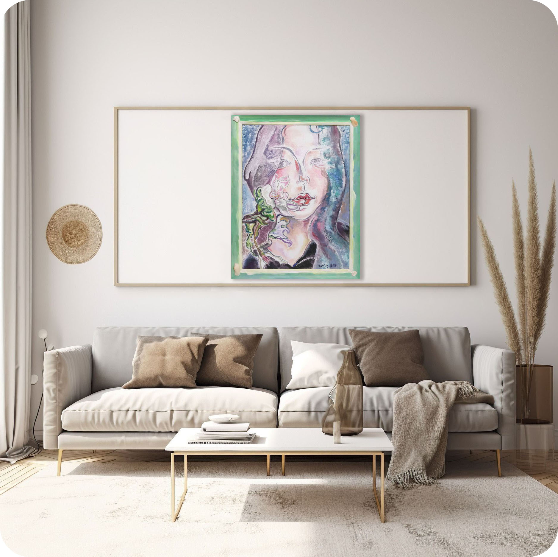 “The Pale Language of Flowers” can be categorized as a contemporary floral-symbolist portrait painting. It transcends mere portraiture by intertwining flowers and the human face, revealing the limitations of both language and emotion. Such works are especially suited for psychological art exhibitions, feminist-themed shows, and possess strong academic and curatorial value.