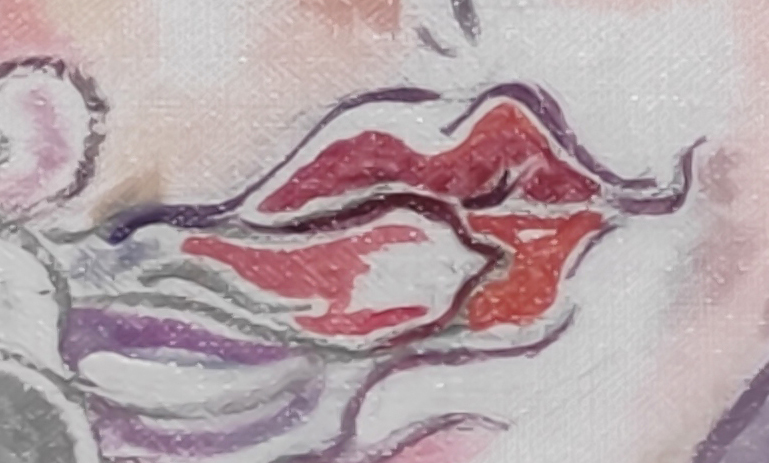The painting overlays semi-transparent petals with the lines of the face, merging the “figure” and the “language of flowers.” This symbolizes the interpenetration of the individual and nature, as well as language and emotion, creating a hazy psychological imagery.