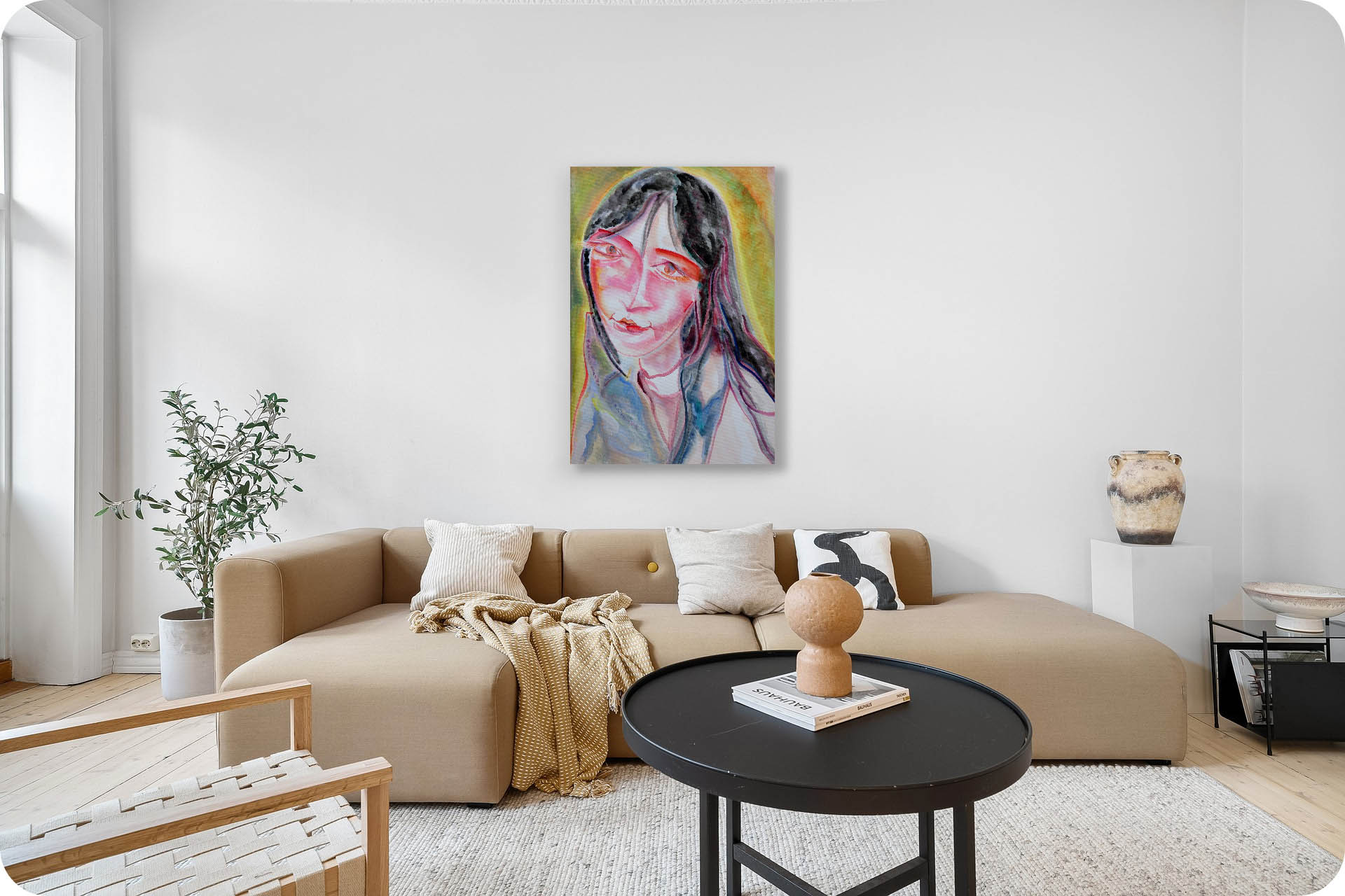 As a piece of contemporary watercolor portrait art, it is especially suitable for bedrooms, reading nooks, or female-themed exhibitions. Its soft, radiant tones bring a sense of warmth and refinement to any interior.